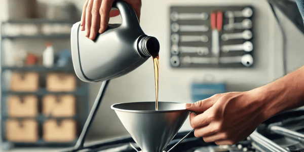 Reinsert the oil drain plug, open the oil cap, and pour the recommended amount of new oil. Afterward, use the dipstick to check the oil level, ensuring it’s within the safe range.